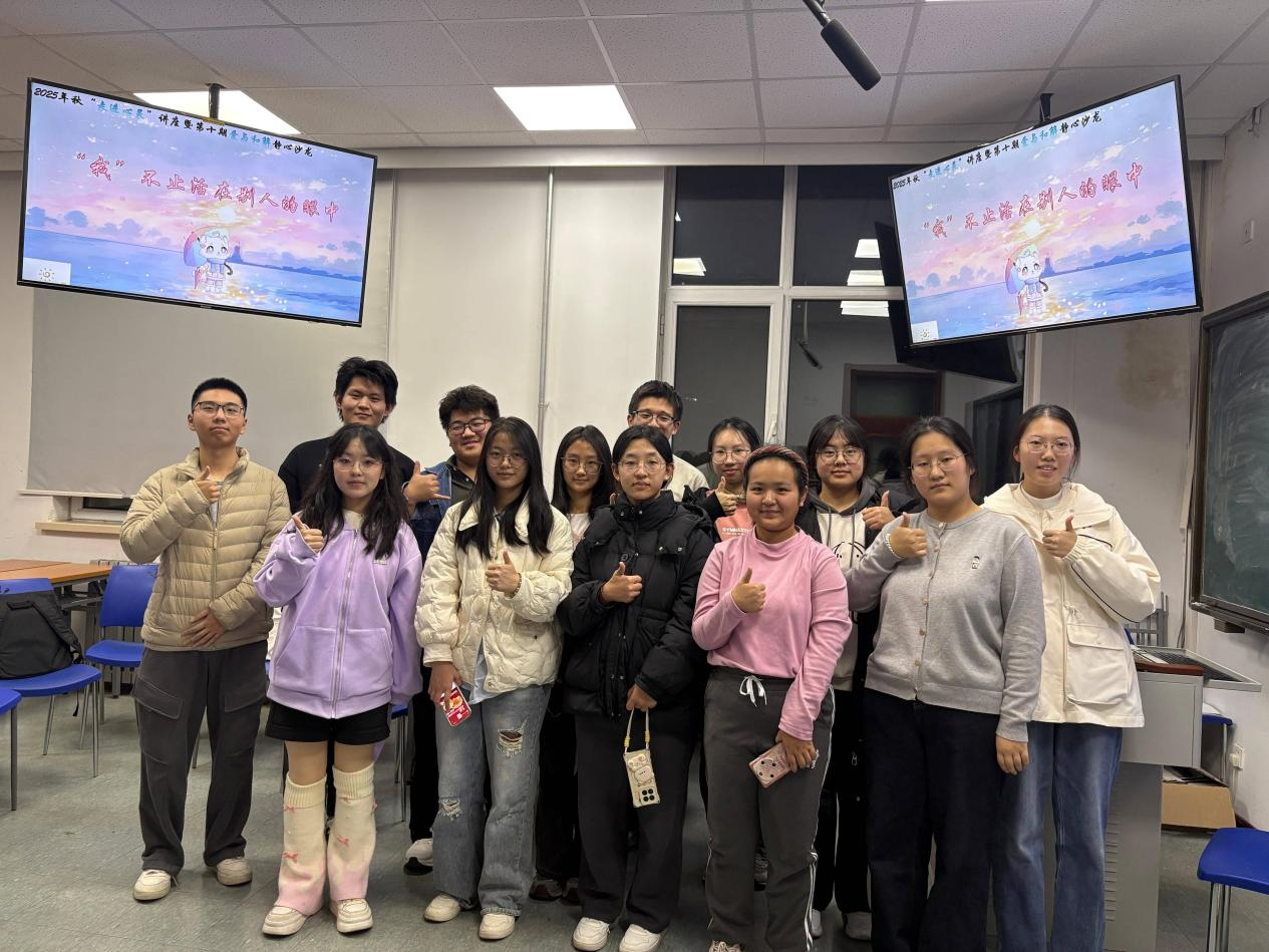 11月16日,外国语学院组织开展“走进心灵”讲座暨“爱与和解”静心沙龙。本次沙龙以“我不止活在别人的眼中”为主题,由学院2022级本科生辅导员赵婧婧主讲,通过沉浸式互动与面对面对话,引导同学们开启一段认识自我、悦纳自我、超越自我的心灵旅程。