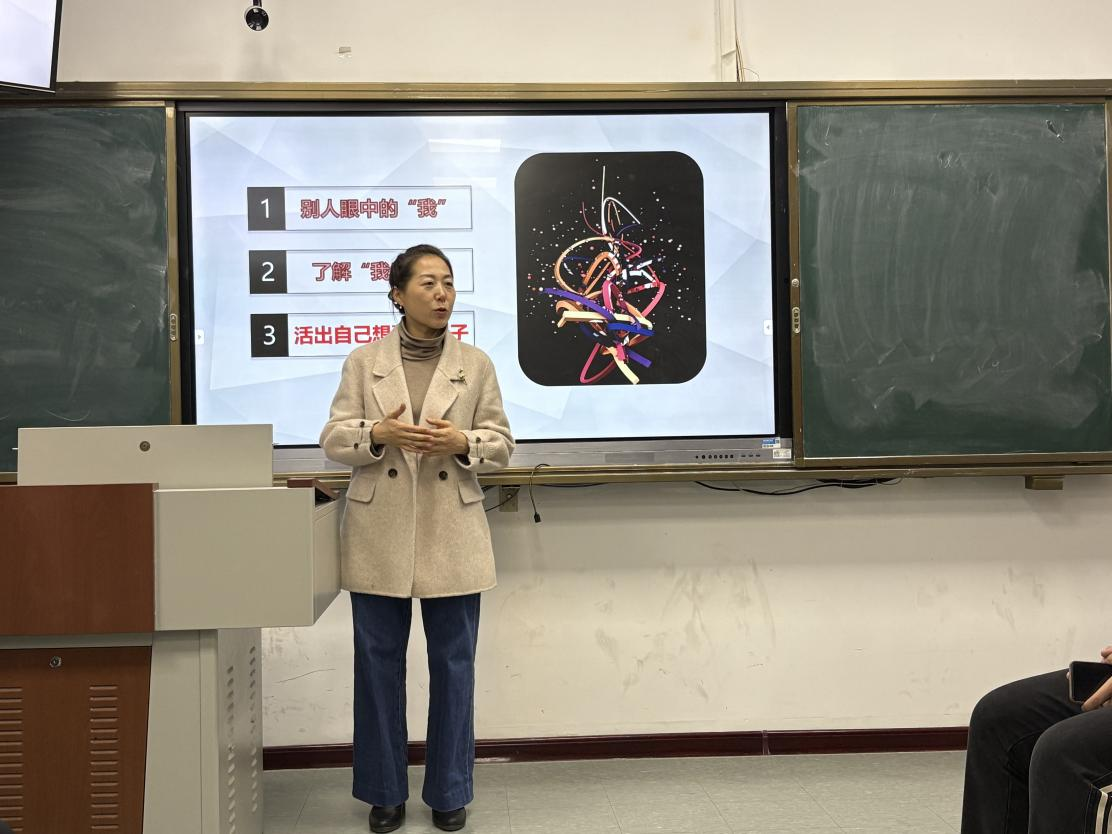在“了解‘我’--我是谁?”环节,赵婧婧引入了“经验自我(Me)”与“主动自我(I)”的心理学概念,以深入浅出的讲讲,帮助同学们清晰区分被社会角色、他人期待定义的“我”,与具备主动感知、选择、创造能力的“我”,为同学们打开了自我认知的新视角。