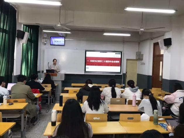 活动伊始,党支部书记赵婧婧领学了党的二十届四中全会精神,重点围绕“如何把握‘十五五’时期我国发展面临的国际国内形势”“怎样理解发挥文化养心志、育情操的作用”等内容进行集体学习,希望全体学生党员不断学习了解国际国内形势,拓展国际视野,增强专业本领,助力中华文化海外传播的同时要持续筑牢中华文化内在根脉,为文明的交融与延续贡献力量。