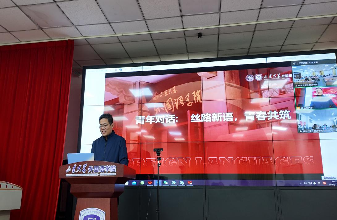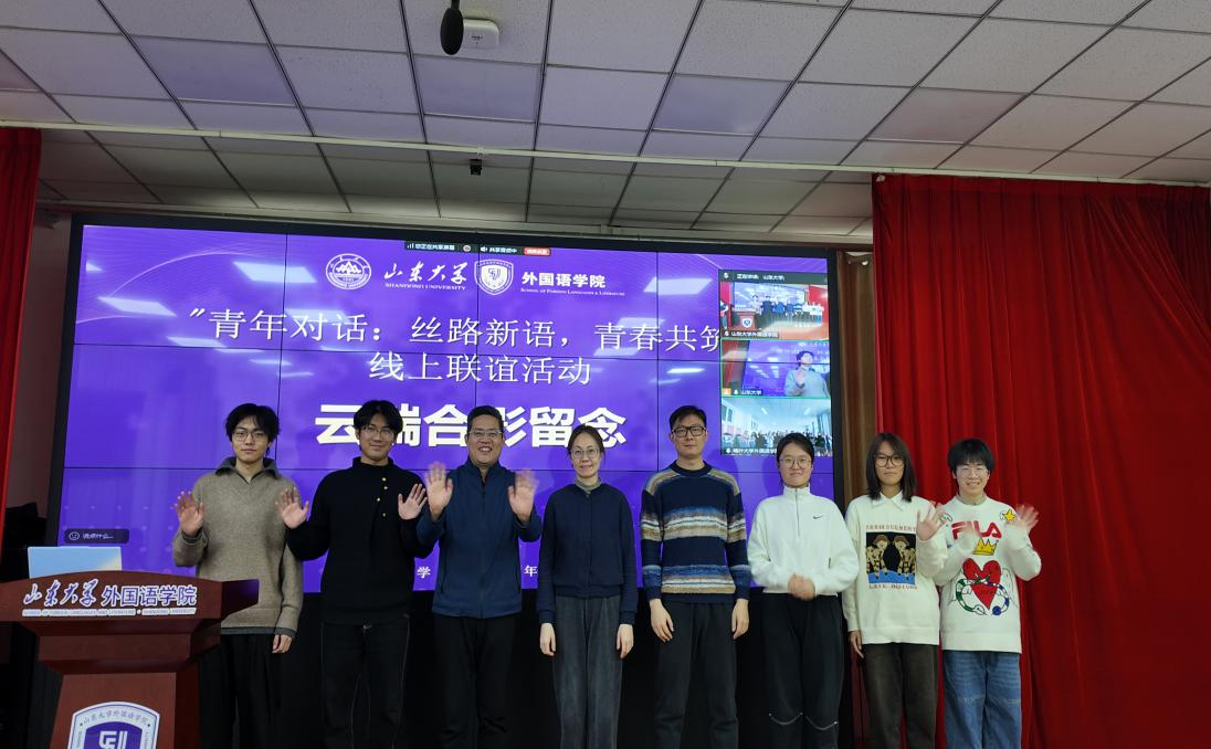 12月12日,我院与喀什大学外国语学院开展了“青年对话:丝路新语,青春共筑”云端交流活动。山东大学外国语学院党委副书记魏鲁鸿、团委书记朱蕾、辅导员高程,喀什大学外国语学院党委副书记、纪委书记阿力木江·买买提明、团委副书记周天生、专职组织员蔡雪凝、辅导员杨雪芬出席活动,两院学生代表共同参与活动。