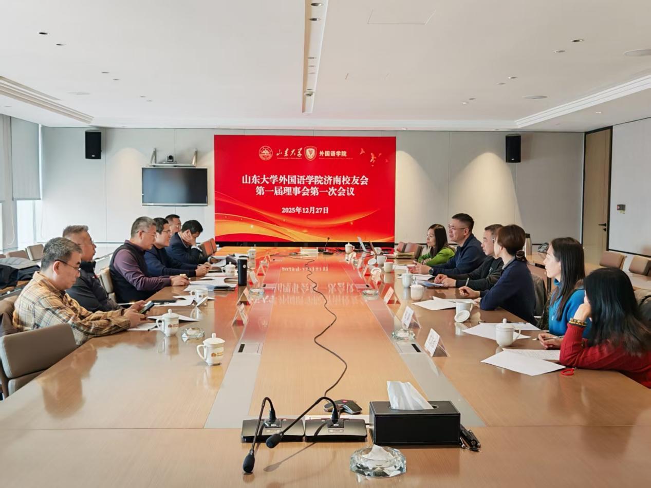 12月27日上午,山东大学外国语学院济南校友会第一届理事会第一次会议在济南成功举行。山东大学外国语学院党委副书记魏鲁鸿,院团委书记朱蕾、辅导员赵婧婧,教师代表庄新红,校友会名誉会长姚东方,会长常德军,常务副会长石振武,副会长薛存良、彭喆,秘书长王进,副秘书长肖辉杰及校友之家代表、秘书处工作人员参加会议,共商校友会发展大计,擘画未来工作蓝图。