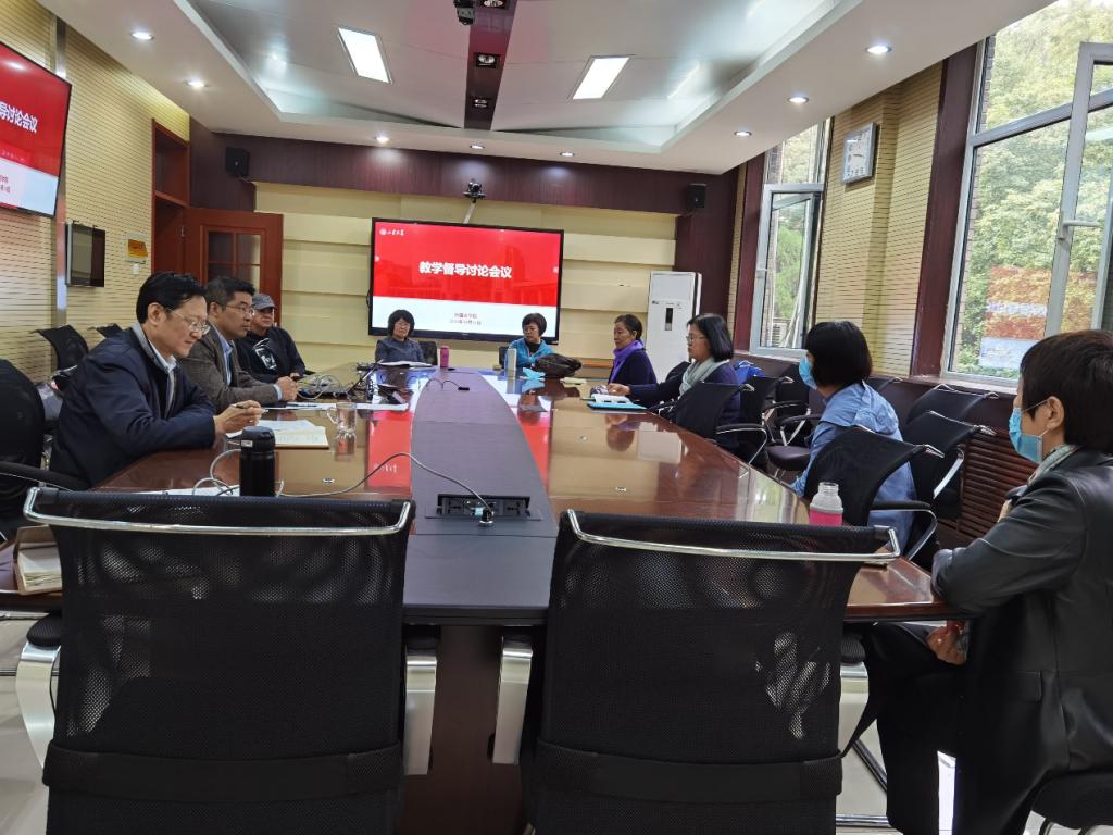 首先,刘洪东对本科教学督导工作的重要性进行了强调,并对前期督导工作进行了梳理。纪云霞、李学岩两位老师随后分享了校级督导工作的经验,并将校级督导相关材料与大家进行了共同学习,院级督导员几位老师也发表了个人的看法,同时教务科董重老师也依据各专业教学安排的不同提出了建议。