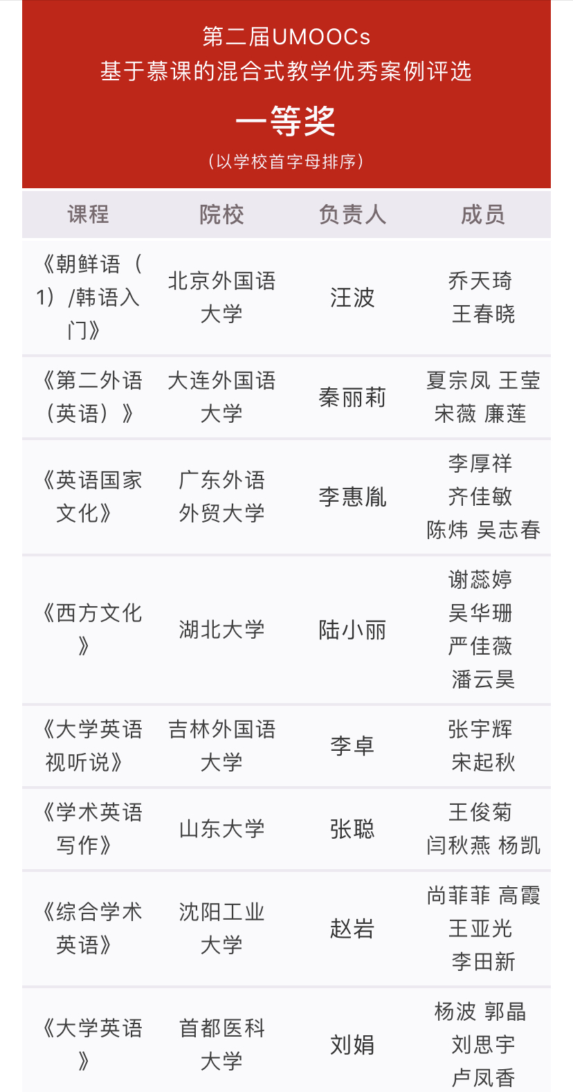 此前,张聪副教授作为课程负责人的《学术英语写作》课程团队在《UMOOCs基于慕课的混合式教学优秀案例评选》网络突围赛中从全国百余支队伍中脱颖而出,荣获全国8强,获得12月20日在全国总决选角逐最终排名的资格。在总决选现场,课程团队凭借现场展示、提问答疑两个环节中的精彩表现荣获大赛亚军。