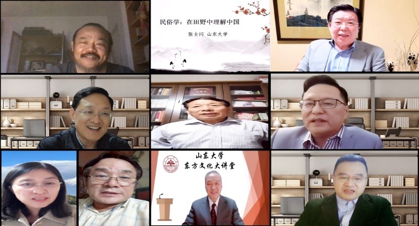 5月6日晚,山东省民俗学会会长、山东大学《民俗研究》杂志主编、儒学高等研究院民俗学研究所所长张士闪教授应邀做客山东大学东方文化大讲堂通识教育讲座暨“师说讲堂”,通过腾讯会议线上平台做了“民俗学:在田野中理解中国”的精彩讲座。来自山大本校及各地院校近400名师生远程聆听。