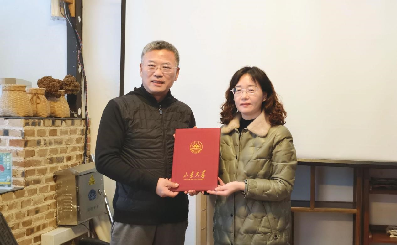 刘华为常德军颁发“山东大学外国语学院学生职业生涯规划导师”聘书,期待校友未来持续为外院学生提供就业指导与实践支持。刘华分析了当前部分学生面临的就业困境与职业认知模糊等问题,指出外语人才培养不能局限于语言技能提升,更要主动对接行业需求,积累实践能力与实操技能。她鼓励同学们以此次参访为契机,深入思考如何将外语专业优势与文旅行业需求精准对接,做好职业规划与能力储备。