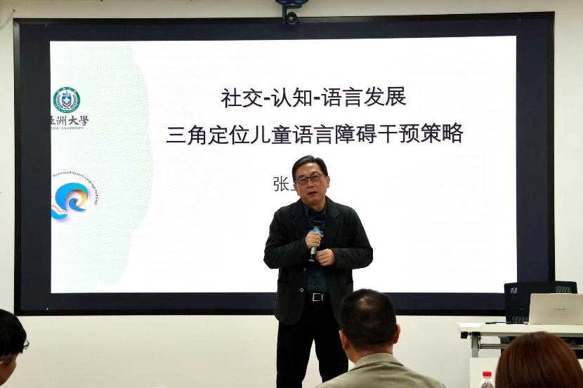 本次培训为期两天,中国台湾亚洲大学听力暨语言治疗学系讲座教授、山东大学外国语学院兼职特聘教授张显达、深圳大学第一附属医院言语治疗科杨峰、萌声萌语康复治疗机构教学负责人张君敏,为大家进行授课。课程内容围绕言语治疗核心理论、言语语言障碍类型与评估方法、干预技术及个案分析等展开。授课专家系统讲解了不同人群(如儿童语言发育迟缓、孤独症谱系障碍、构音障碍等)的言语语言特点,并通过临床案例,引导学生实践性思考评估量表的使用、康复目标的制定以及多学科团队协作模式。课堂气氛活跃,师生互动频繁。学员们普遍表示,通过此次培训,对言语治疗有了更加直观而具体的认识,也更加坚定了今后投身语言康复相关研究工作的信心。