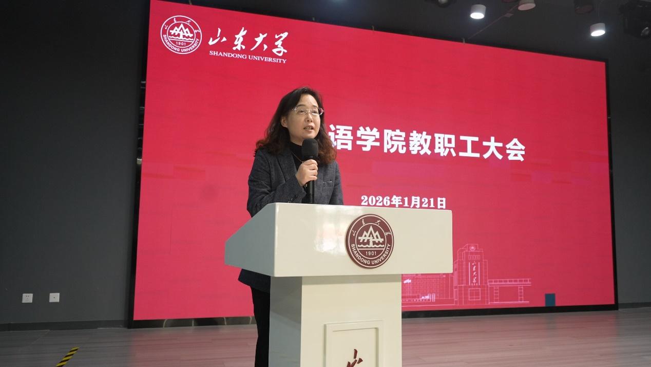 1月21日下午,洪家楼校区大学生活动中心张灯结彩,喜气洋洋,外国语学院全体教职工大会暨2026年新春嘉年华活动在此隆重举行。