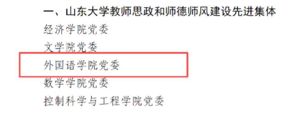 推进党员教育质量提升行动。高标准、精细化提高党员发展质量,以“五个一”教育活动淬炼党员意识,擦亮政治身份。小语种专硕入选校级样板党支部,法语系获评山东大学三八红旗集体,获评招生拓展先进集体,8名党员教师和团队获省校级荣誉表彰,36名学生党员获省级以上表彰,尼诺剧社获评“榜样的力量”年度人物,多项目入选校基层党建创新项目、主题党日活动案例。