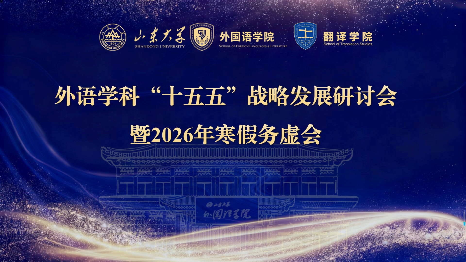 2月25日至26日,山东大学外国语学院、翻译学院联合召开外语学科“十五五”战略发展研讨会。会议由外国语学院、翻译学院院长马文教授主持,特别邀请北京外国语大学校长贾文键教授、浙江大学文科资深教授许钧教授、上海外国语大学校长助理胡开宝教授先后作主旨报告,两院党政领导班子、学术委员会委员、教学指导委员会委员、各系(部)主任及规划编制工作小组成员参会。