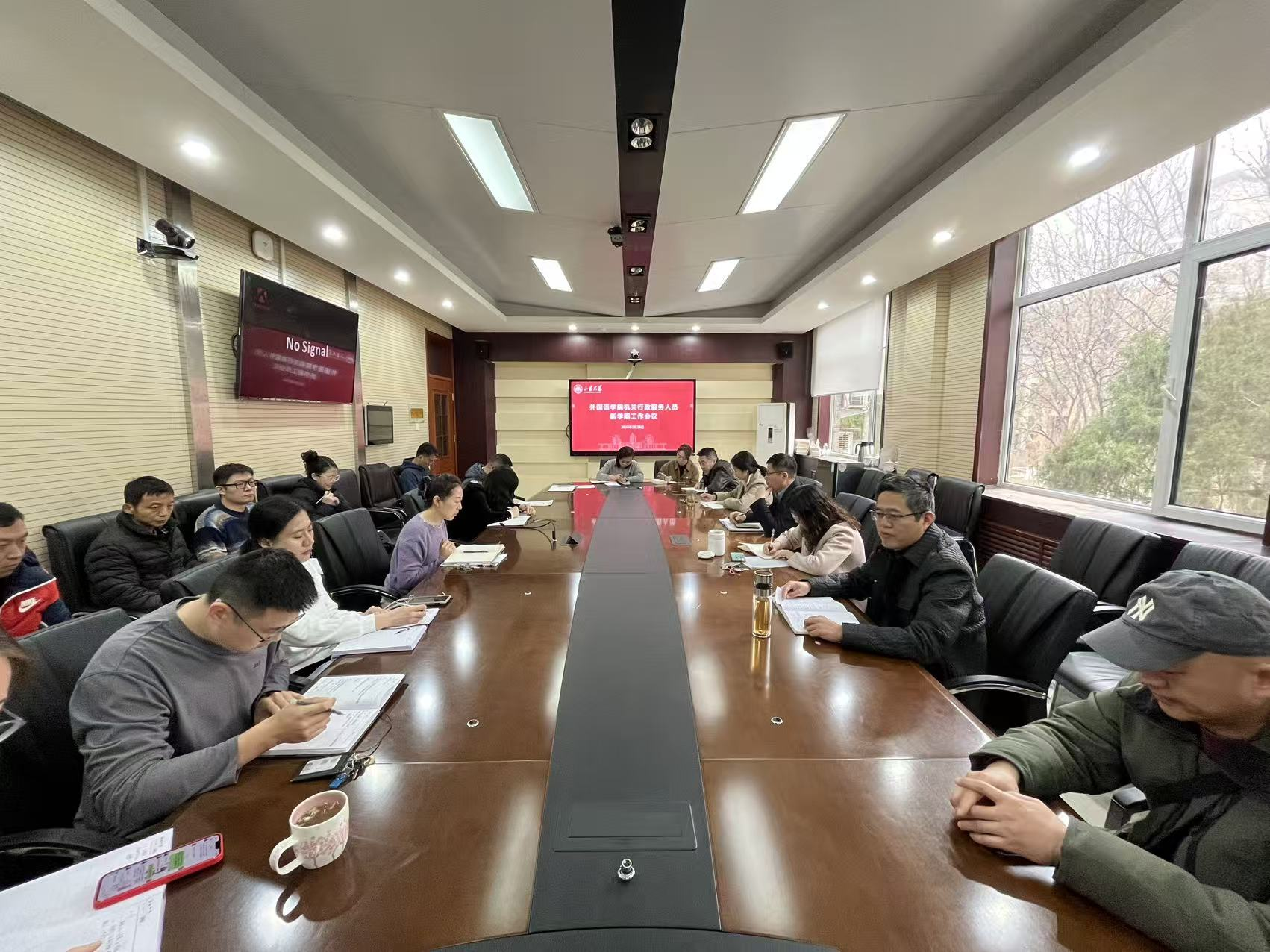 2月28日上午,外国语学院在7号楼215会议室召开机关行政服务人员新学期工作会议。学院院长、党委副书记马文,党委书记刘华,党委副书记魏鲁鸿、马蕾出席会议,全体机关行政服务工作人员参会。会议由魏鲁鸿主持。