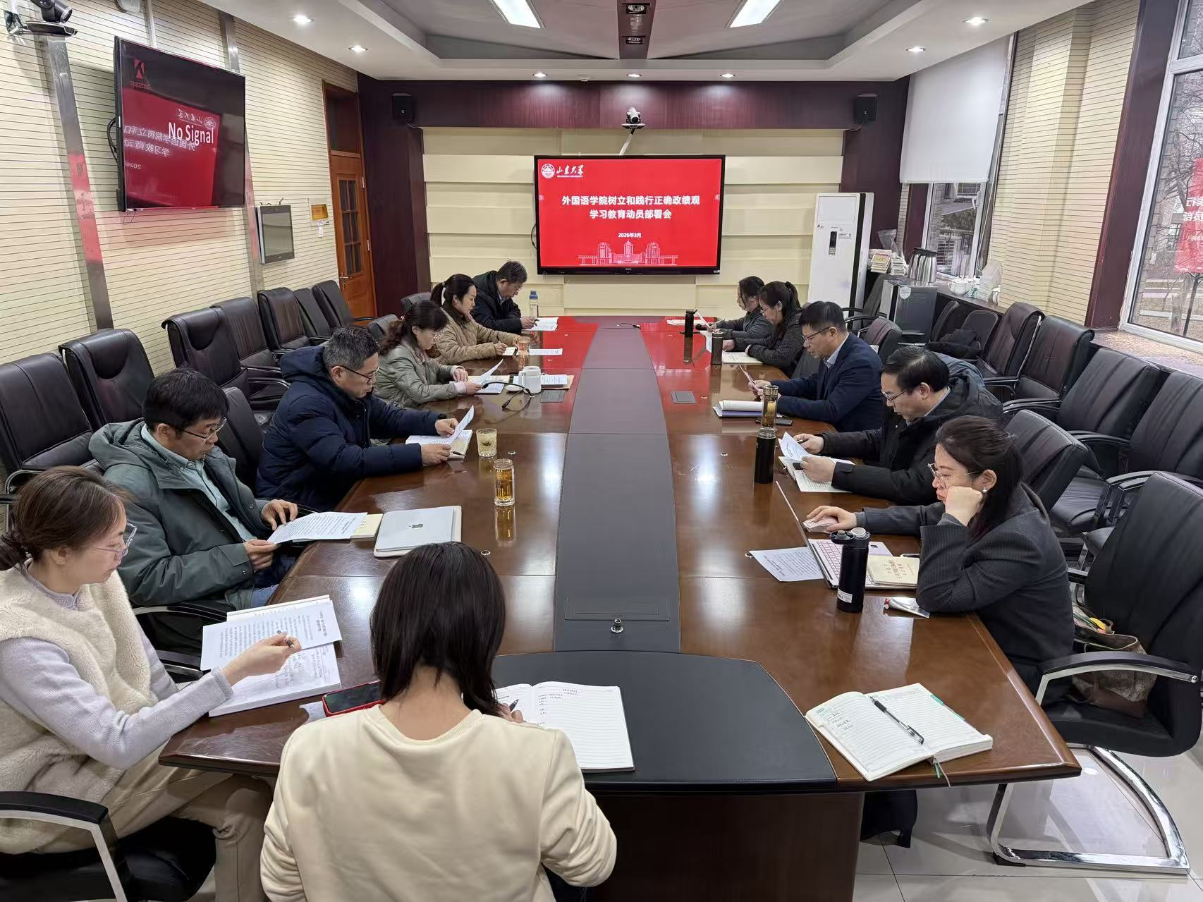 会议强调,开展学习教育要紧密结合学院改革发展实际,坚持以立德树人为根本、以师生为中心、以实干为导向,确保学习教育走深走实、见行见效。会议对下一步工作进行了具体部署。一是强化顶层设计,精准制定方案。立足外语学科特色和学院发展阶段,研究制定具有针对性、可操作性的学习教育实施方案。二是抓实关键环节,务求工作实效。统筹推进学习研讨、查摆问题、集中整治、建章立制、开门教育等重点措施。特别是要深入一线开展调查研究,广泛听取师生意见建议,把“开门搞教育”落到实处,切实解决一批制约学院发展的瓶颈问题和师生急难愁盼的实际问题。三是坚持以上率下,压紧压实责任。班子成员、党委委员要发挥“头雁效应”,严格落实联系党支部制度,加强对各支部学习教育的全过程督导,引导广大党员师生将正确政绩观内化于心、外化于行。四是做好结合文章,推动事业发展。将学习教育与科学编制学院“十五五”发展规划紧密结合,与加快实现学院“由大到强、由大到能”的战略目标紧密结合,把学习教育激发出的热情转化为攻坚克难、干事创业的强大动力。