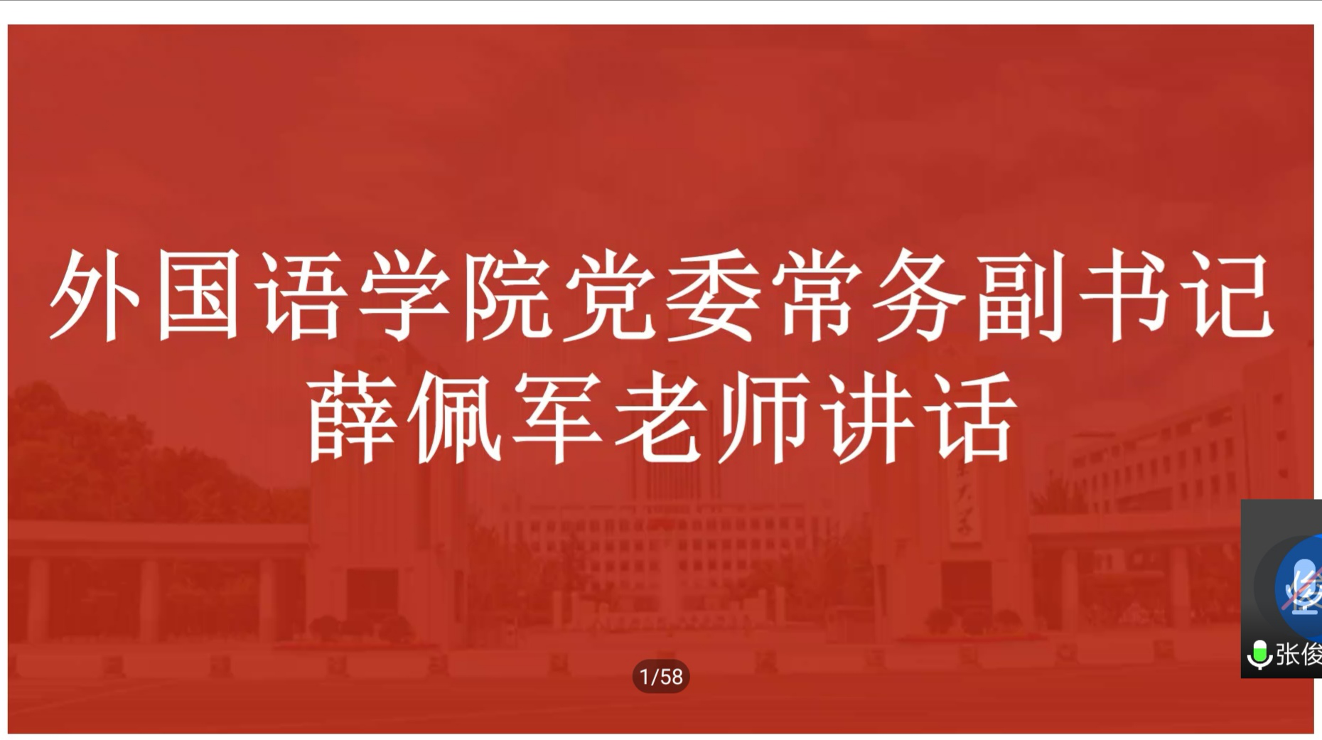 会议伊始,薛佩军就目前的战疫情况发表了讲话并对外国语学院师生及职工的抗疫防疫工作给予了高度肯定。薛佩军指出,中国在此次疫情中的作为体现了党奉行的人民至上的理念,也取得了来之不易的成果,与此同时,外国语学院在疫情面前也第一时间作出了反应,对师生状况进行了全面摸排。薛佩军还提到,作为90后,外院的学子应当将个人成长与国家复兴联系起来,将个人理想与国家未来联系起来,担负起外语人应承担的责任。